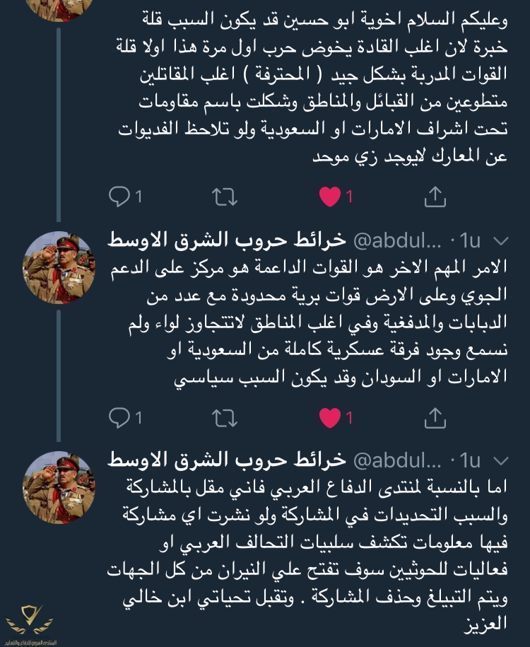انا برأيي ان استراتيجية الجبهات المتعدده افضل بكثير من جبهات موحده...كلما قلت الجبهات كلما زاد تركيز مقاتلين الحوثي..و تحول القتال لقتال عنيف و ضاري يجذب انتباه الإعلام و المجتمع الدولي و في ليله و صحاها تتحول السعوديه من داعم للشرعية إلى دولة تهدف للتطهير الطائفي انام اعين العالم.