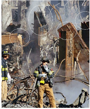 مادة thermite, termite, thermalite, هي خليط من مواد البارود و اوكسيد الحديد ليست بمادة متفجرة ولكنها مادة سريعة الإحتراق تذيب المنطقة المعنية تحت درجات 2000 درجة مئوية تتكون من مواد Aluminum, Magnesium, titanium, zinc, Silicon,borron وهده المادة هي من قطعت الفولاذ كما في الصورة.