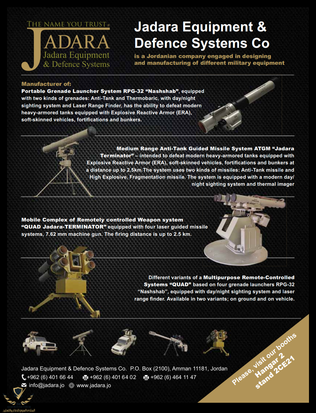 شركة جدارا للانظمة والمعدات الدفاعية الاردنية تكشف و لاول مرة عن منصة "Quad Jadara Terminator" تحكم عن بعد تتضمن 4 صواريخ Terminator اضافة الى سلاح رشاش الي عيار 7.62 مدى المنصة حتى 2.5 كم ..