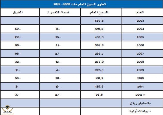 هوا احنا في عام 2012؟ارتفاع الدين العام الداخلي والخارجي بنسبة فاقت 21% الى 737 مليار ريال اي 143.2 مليار دولار والسعودية ملزمة بتجميع ما بين 60-70 مليار ريال حتى متم نهاية هده السنة ،اقترضت السعودية حتي نهاية شهر ابريل 18 مليار ريال اي 4.8 مليار دولار بعجز 195 مليار ريال او 7,3% من الناتج المحلي الاجمالي RIB.