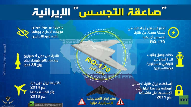 ثالثا ايران تدعي انها استخدمت طائرة بدون طيار مستنسخة عن الطائرة الامريكية نوع RQ-170 وهي نسخة استطلاعية لا تحوي حجرات اسلحة او انظمة توصيب وادعاء ايران انها تستنسخها لتحمل اسلحة وانظمة تصويب وانظمة هيدروليك يعني ان ايران تفوقت على الولايات المتحدة الامريكية وهو شرف حتى روسيا والصين لا يدعوه .