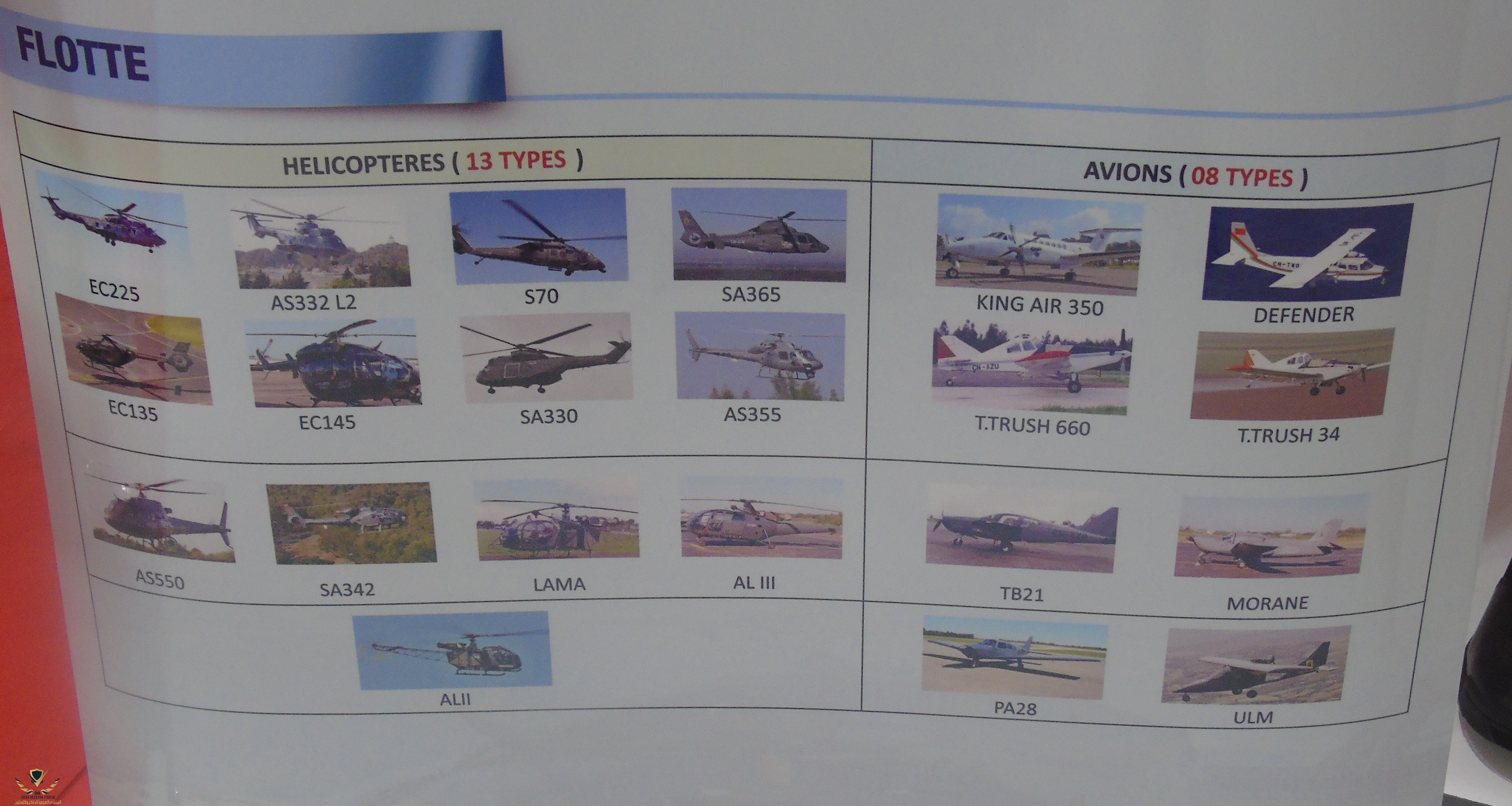 الدرك لديه 13 نوع مختلف من المروحيات كل نوع باعداده الخاصة و 8 انواع مختلفة من الطائرات و هذه صورة حصرية لكل الانواع الموجودة