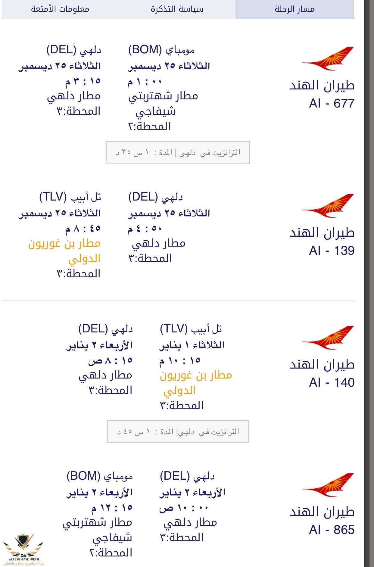 تعليقي على الخبر وواضحت ان طيران الهندي يقوم برحلة مباشرة من الهند للكيان من مارس الماضي وهذا حقيقة وليست شي من صناعتي مشاهدة المرفق 146418
