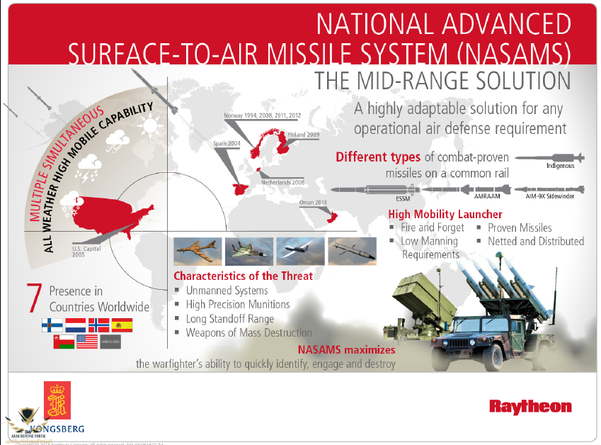طلبت حكومة قطر شراء المواد والخدمات الدفاعية من حكومة الولايات المتحدة لدعم البيع المباشر لنظام الدفاع الجوي أرض - جو (NASAMS) وتشمل يلي: