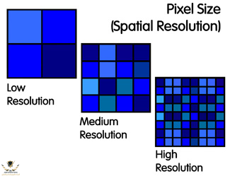 الدقة توصف قدرة الحساس في القمر الصناعي على تصوير مساحة ما على الارض خلال البكسل الواحد.