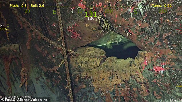نشاهد في آخر صورة من الصور لقطه بانورامية تُظهر أثر الإصطدام بقاع المحيط كأنه حدث بالأمس بالرغم من مرور 78 عاماً على غرقها !!?