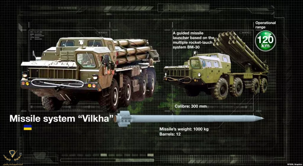 راجمة Vilkha عيار 300 ملم . طورت على أساس نظام الصواريخ السوفيتي BM-30 "Smerch"