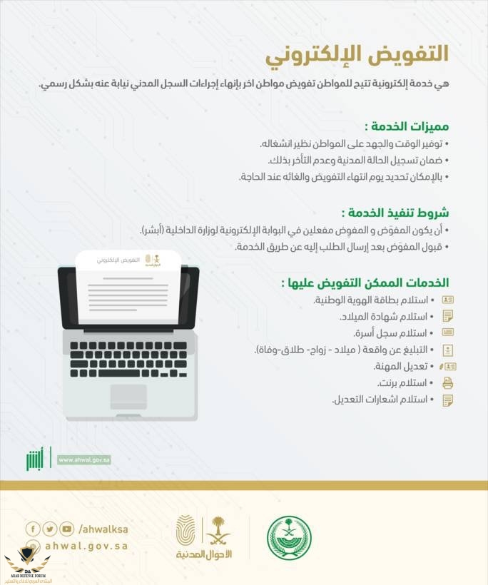 وهذه جزء من خدمات التفويض الالكتروني تختص بالأحوال المدنيه ، الخلاصه هناك خطوات بسيطه تقضي على ظاهره خطيره