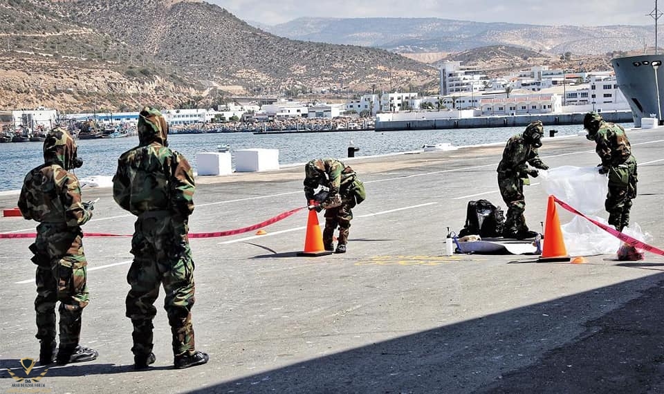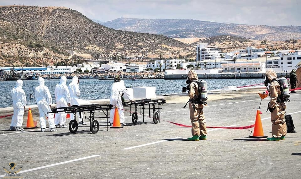 وحدة USS التابعة للقوات المسلحة الملكية تنفذ تمرينا عملياتيا للتدخل والاغاثة في حالة هجوم كيمياوي بميناء أكادير.