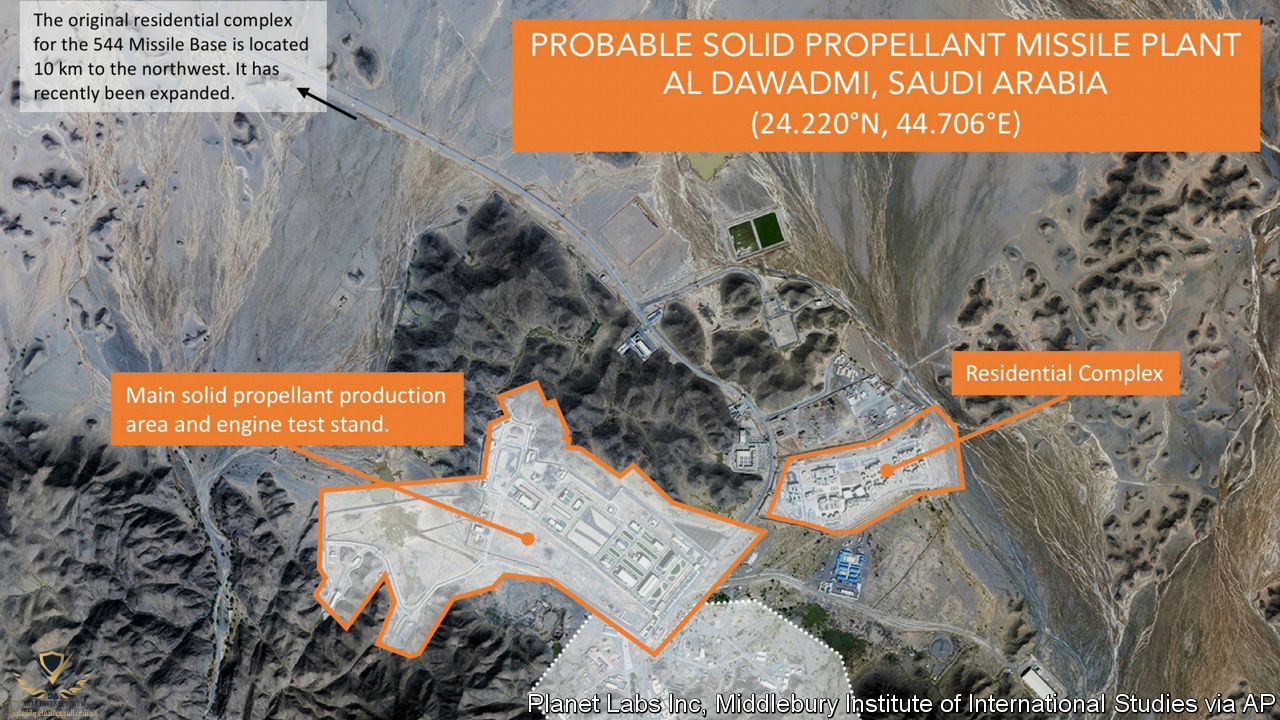كشف مركز ميدلبري في كاليفورنيا انه بعد تحليل صور الاقمار الصناعية عن مواقع في السعودية ان السعودية قامت ببناء مصنع للصواريخ الباليستية يشمل اقساما متخصصة بنظم المحركات وان تجارب للمحركات الباليستية قد سجلت بالاقمار الصناعية في ذلك الموقع أكثر من مرة على مدار الاشهر الماضية