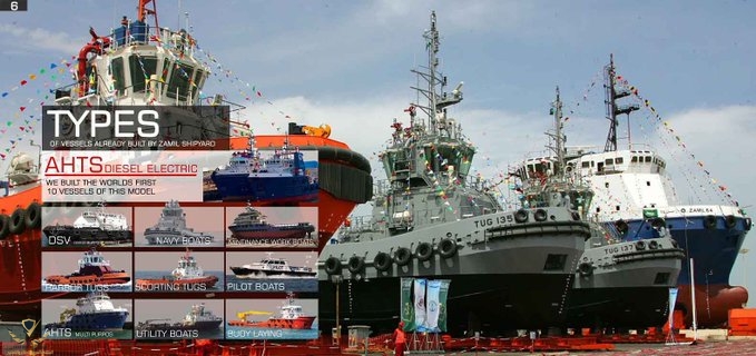 أكثر من عشر أنواع من السفن منها سفن خفر السواحل تقوم ببناءها ترسانات الزامل لبناء وإصلاح السفن