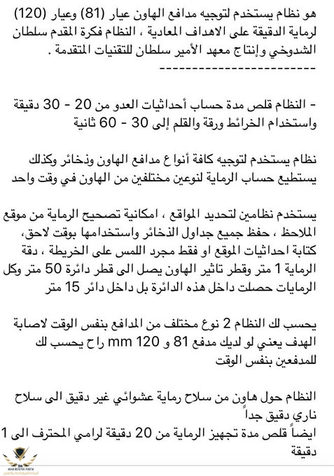 (مركز الأمير سلطان للدراسات والبحوث الدفاعية) تطور نظام توجية رماية لأسلحة الهاون
