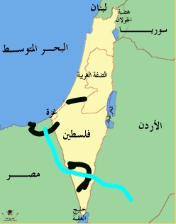 خارطة تقريبية للدولة الفلسطينية الجديدة منقولة من موقع اسرائيلي