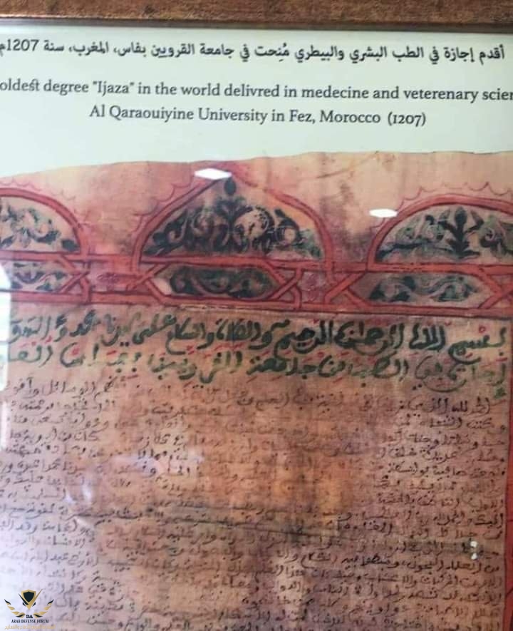 ‏أول إجازة في الطب البشري في ‎المغرب من جامعة القرويين سنة 1207
