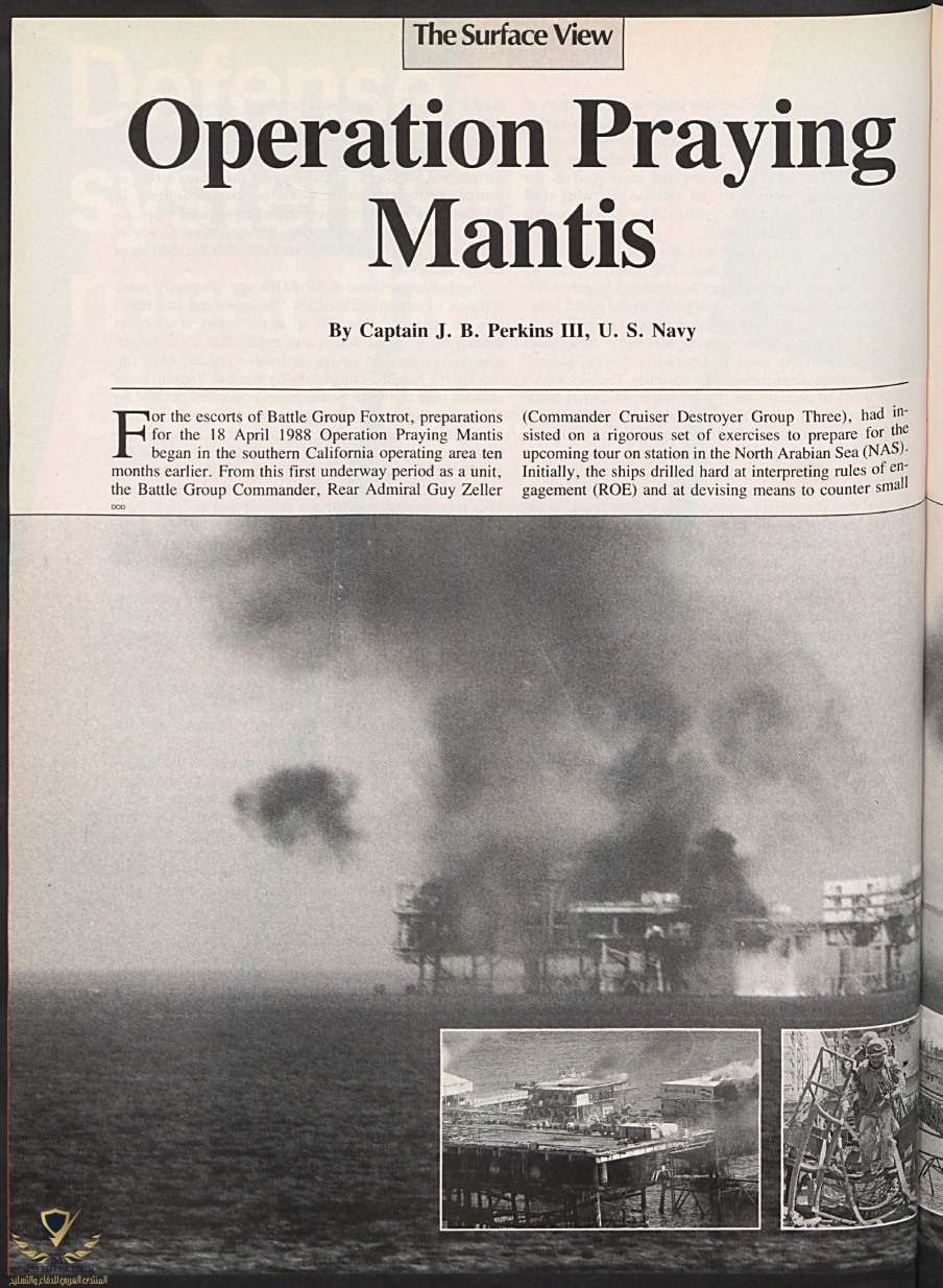 في 14 أبريل، كانت فرقاطة الصواريخ الموجهة يوإسإس صمويل روبرتس قد ارتطمت بلغم بحري أثناء انتشارها في الخليج العربي كجزء من العملية إرنست ويل، مهمات القوافل المرافقة 1987-88 التي كانت السفن الحربية الأمريكية ترافق أثناءها حاملات النفط الكويتية لحمايتها من الهجمات الإيرانية. أسفر الإنفجار عن ثقب بقطر 4.5 متر في هيكل السفينة صمويل روبرتس وأوشكت على الغرق. أنقذ الطاقم سفينتهم بدون خسائر في الأرواح، وتم سحب السفينة إلى دبي في 16 أبريل. بعد التلغيم، أخرج غواصو البحرية الأمريكية ألغاماً أخرى في المنطقة. عندما وجد أن الأرقام المسلسلة متطابقة مع الألغام التي تم العثور عليها مع إيران أجر في سبتمبر السابق، خطط المسئولين العسكريين الأمريكيين لعملية انتقامية ضد الأهداف الإيرانية في الخليج العربي.