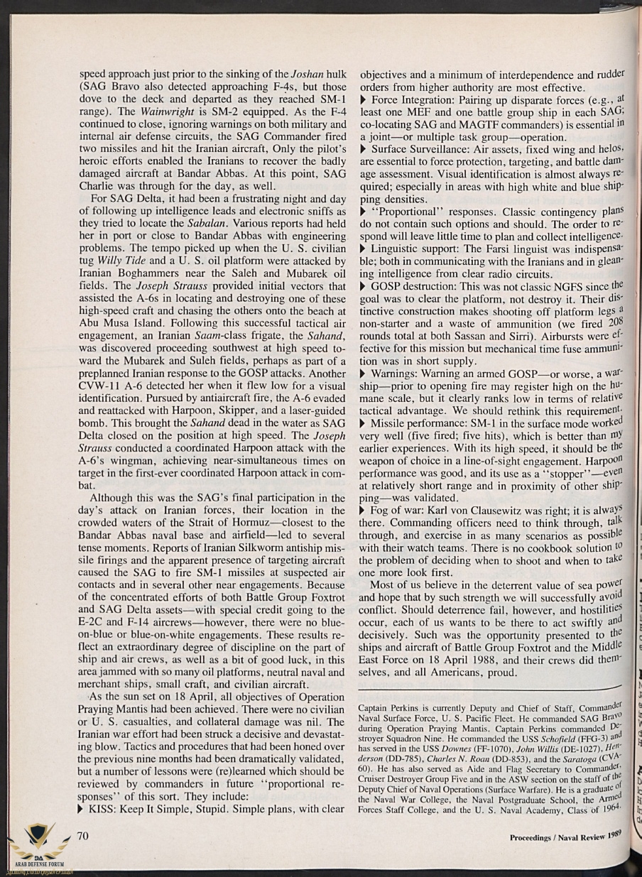 تبعاً لبرادلي پنيستون، فإن الهجوم الأمريكي قد ساعد في الضغط على إيران من أجل الموافقة على وقف إطلاق النار مع العراق في الصيف التالي، منهياً نزاعاً استمر ثمان سنوات بين بلدان الخليج العربي.