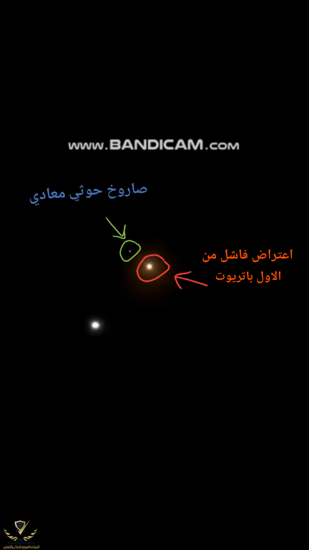 الصاروخ الثاني باتريوت انفجر لما يخيل انه فوق المنصة لكنه كان عملية اعتراض ناجحة