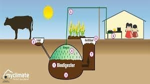 اما الروث ينتج منه غاز الميثان الذي يولد كهرباء ونار تدفئة عن طريق الهاضم