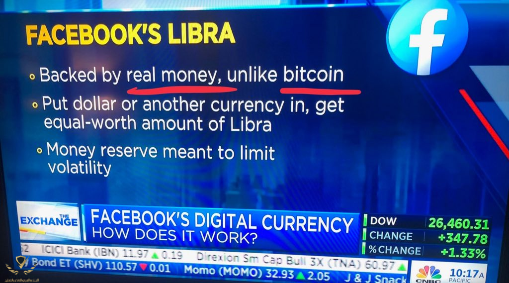 ركز على ان عمله فيسبوك هى مدعومه بأموال حقيقة وليست مثل البتكوين.