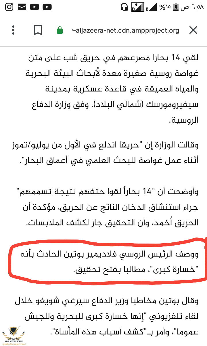 ممكن بوتين يقول هذا الكلام لأن الغواصة كانت في مهمة تجسسمشاهدة المرفق 185783