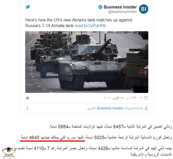 اعتقد التركيز على المدرعات الخفيفه والتي لها قدرات قتاليه محترمه يمكن تغني عن هالعدد الكبير