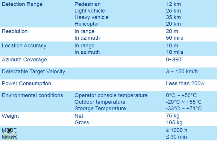 information of the low altitude flying targets in jamming and clutter conditions. This system is installed on a truck where the operator console and communication system is located. This system uses different operating techniques according to the operational requirements and constantly works in different weather conditions and is able to extract data in 2 dimensions (range and azimuth).