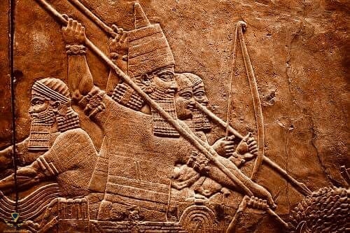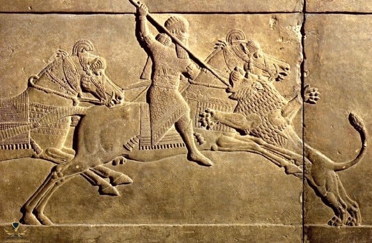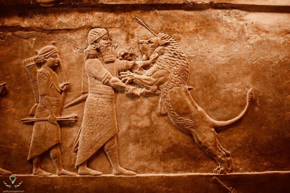 نحت عجيب بادق التفاصيلنحت بارز للملك الاشوري العظيم اشوربانيبال هوه يمارس رياضة صيد الأسود