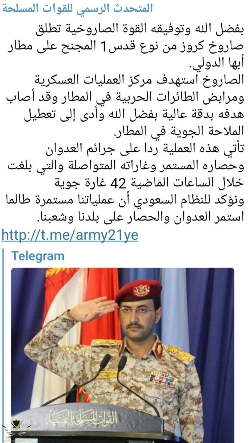الحوثي غبي يضحك على مؤيديه في اليمن? لايوجد مرابط طائرات بالمطار الدولي حد علم ولا مركز عمليات ? الا اذا يقصد مقصورات برج المراقبه المدنيه حق الطائرات شي ثانيمطار مدني والصابون استهدف مركز عسكري بالمطار. هل كانت ضربة حظ أم يمتلك الحوثيين صواريخ دقيقة؟؟؟