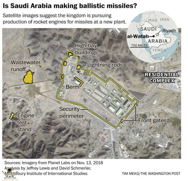 تشير صور الأقمار الصناعية إلى أن المملكة العربية السعودية قد شيدت أول منشأة لإنتاج صواريخ باليستية ، وفقًا لتحليلات المصدر المفتوح الأمريكية التي اكتملت في أواخر يناير. مثل هذا المصنع من شأنه أن يزيد ترسانة الرياض الحالية من الصواريخ الباليستية المتوسطة المدى التي توفرها الصين.