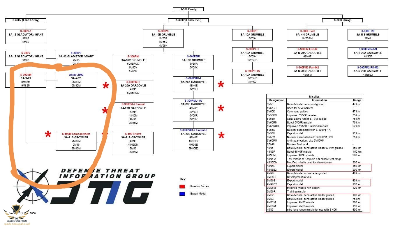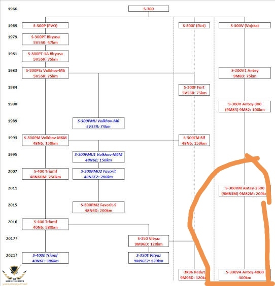 S-300V4 التي اشترتها مصر في عام 2013 ، والتي تتوافق مع صواريخ 40N6E الأسرع من الصوت والمضادة للطائرات والتي يبلغ مداه أيضًا 400 كم. من غير
