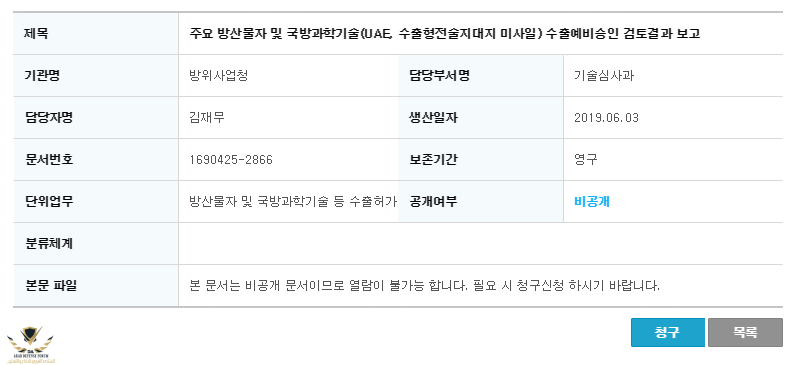 تشير الوثيقة الحكومة D2B إلى أن دولة الإمارات العربية المتحدة قد طلبت رسميًا بيع عدد غير معلوم من الصواريخ البالستية التكتيكية KTSSM لنظام الدفاع Hanwha ، ومركبات إطلاق Chunmoo الخاصة بها ، والطلب بانتظار الموافقة حكومة كوريا الجنوبية.