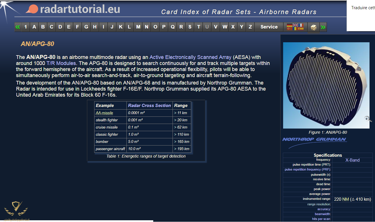 ال APG 80 يكشف هدف بمقطع 5 متر مربع منر 165 كيلومتر