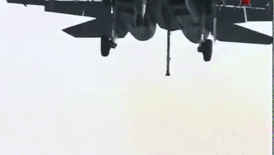خطاف الهبوط لتهدئة سرعه الطائرههوا اي الي البتاعة الطويلة في مؤخرة الطيارة اول ما لمست سطح الحاملة راحت اتنت!!