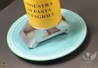 و في هذه الحالة تتضمن ال MRE حامل للعلب و توضع الشعلة اسفله و توقد باعواد الكبريت