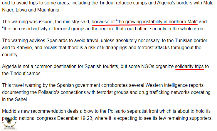 صحيح.. التحذير يهم بوجه خاص مخيمات و مقرات الجبهة الإنفصالية "البوليساريو" الموجودة في منطقة تندوف الجزائرية..