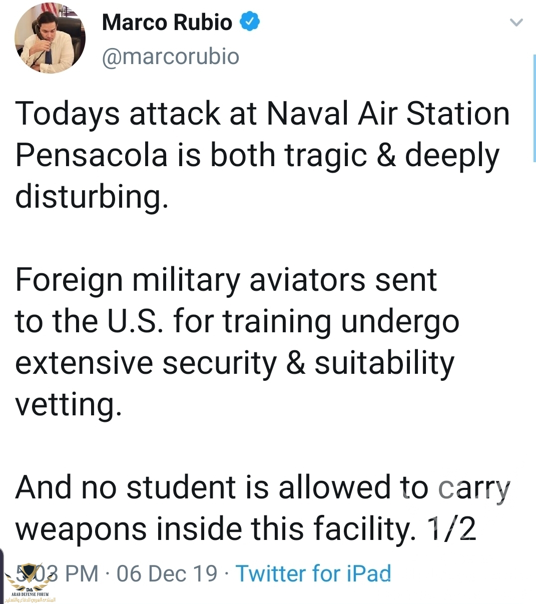 تصحيحبعد السالفة هذي صار فيه تدقيق في حمل اي شخص للسلاح داخل القواعد حتى لو كان ضابط امريكي.