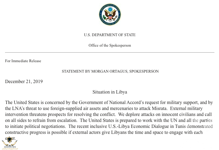 بيتكلم عن "تخوفات" مش وقائع ، تخوف من طلب حكومة السراج لدعم عسكري اجنبي و من تهديد الجيش الليبي استخدام مقاتلات أجنبية تم تزويدهم بها .