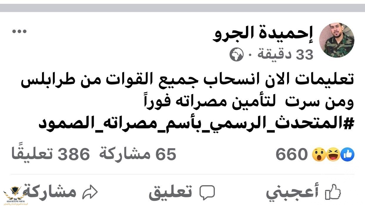 بعد سرت اصبح الدور على مصراتة ولا عائق بين حفتر ومصراتة بهد تقهقرهم اليهاسرت معقل للوفاق مع مصراتة