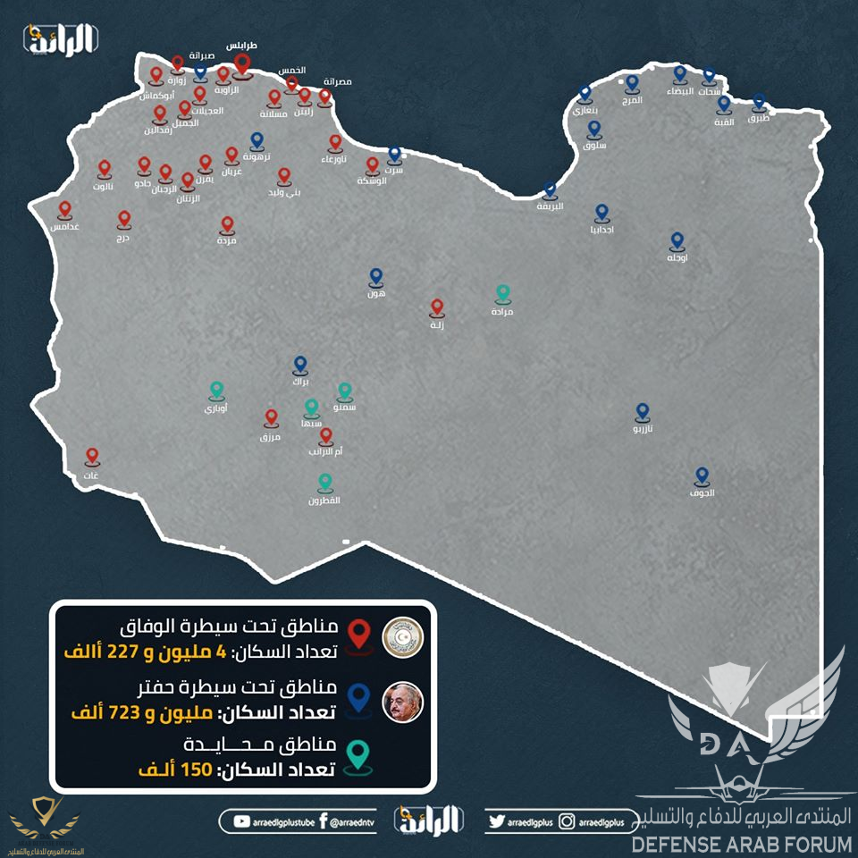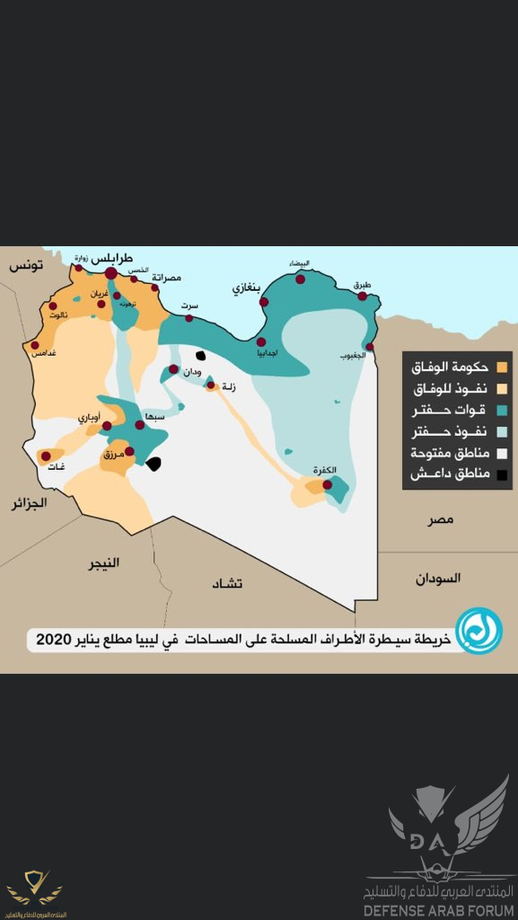 4.على الارض معركة ليبيا شبه محسومة فمهما فعل الاتراك لايمكنهم تغيير الوضع على الارض الا بتدخل عسكرى نظامى كبير و هو غير ممكن لعدة اسباب اهمها اللوجستيات اما ارسال قوات خاصة او مرتزقة او غيرة فهو غير مؤثر عند ساعة الحقيقة غير فى زيادة خسائرهم على الارض