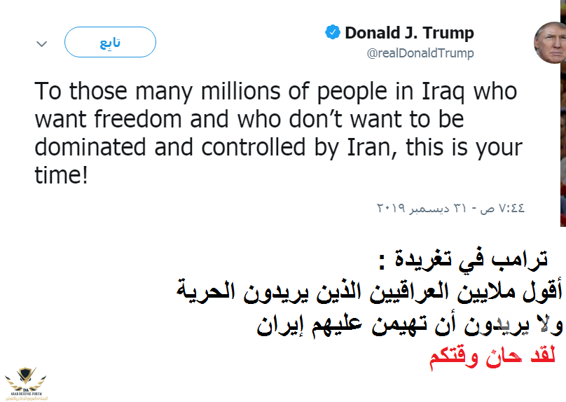 ترامب ذكيامريكا اخيرا شعرت بخطر ايران على العراق
