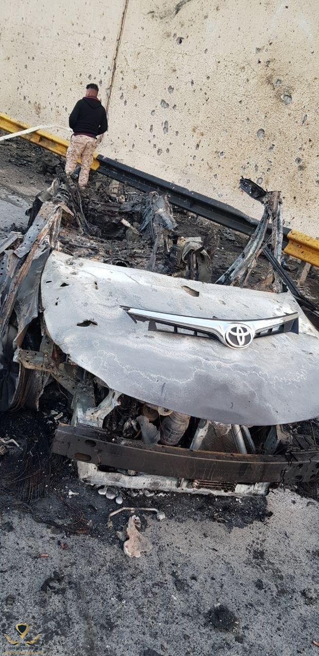 اكثر من سيارة فيه وحدة محروقة والثانية منقلبة والثالثة نزلت صورتها انا . معدومة الملامح يقولون افالونالقتلى حول 10 و ظهرت سيارة واحدة مستهدفة؟