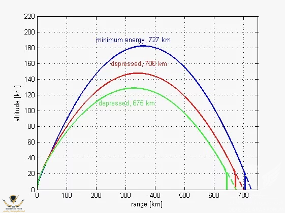 يلاحظ انه كلما كان المسار واطئ depressed زادت مسافة سقوط البدن بعيدا عن الراس الحربي