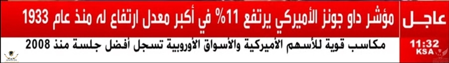 مؤشر داو جونز الأميركي يرتفع 11% في أكبر معدل ارتفاع له منذ عام 1933