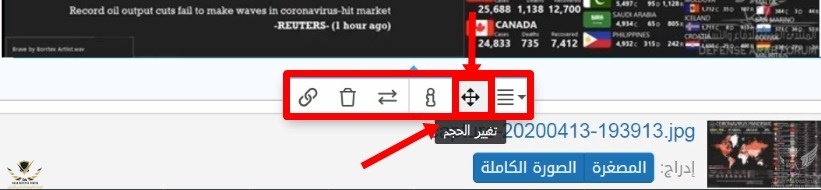 عند المعاينة يظهر حجم الصورة المراد أضافتها