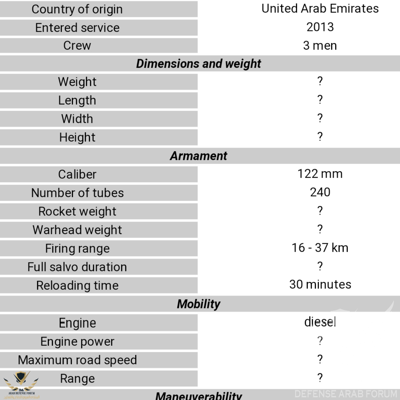 تحتوي المركبة على مقصورة مدرعة مزدوجة يتمتع نظام المدفعية الجديد بعدد من المزايا التي تتفوق على التصميم السوفيتي القديم تجدر الإشارة إلى أن أنظمة BM-21 Grad المتبقية قد تم تطويرها في أوائل الستينيات وتقترب من نهاية فترة خدمتها.