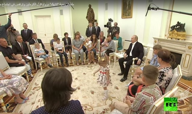 التمثال موجود بالقاعة اصلا وربما سبب الوقوف هو كثرة عدد الوفد التركي في مكتب بوتين