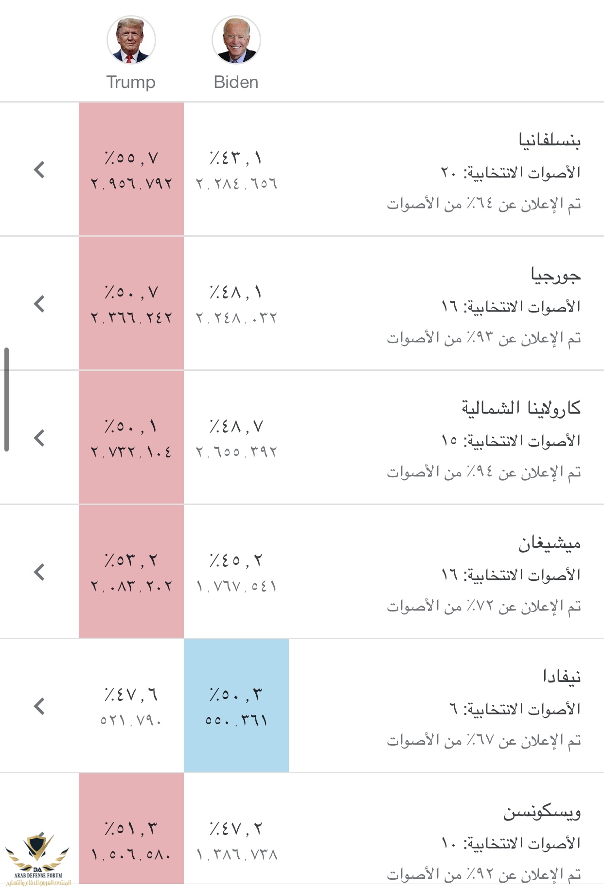 تم حسم اريزونا لبايدن