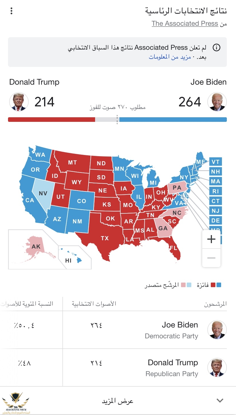 الحسم في نيفادا واضح لان الفرز الى الان ٧٥٪ والفرق مو كبير