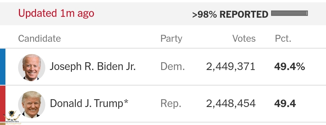 نحن نتحدث الأن عن فرق اكثر من 3 ونص مليون صوت بين ترامب و بايدن