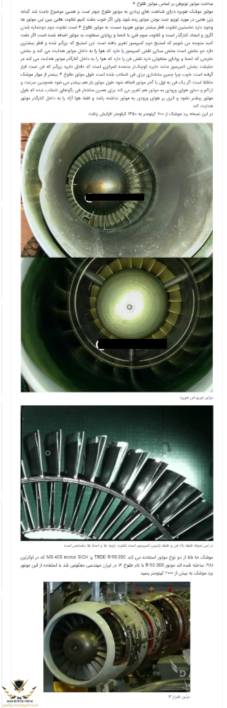 بحسب اعلان الموقع الايراني نفسه والذي يقف عليه خبرائهم ، لم يذكروا انه بمحرك توربوجت " هذا اتباعاً لطريقتها "